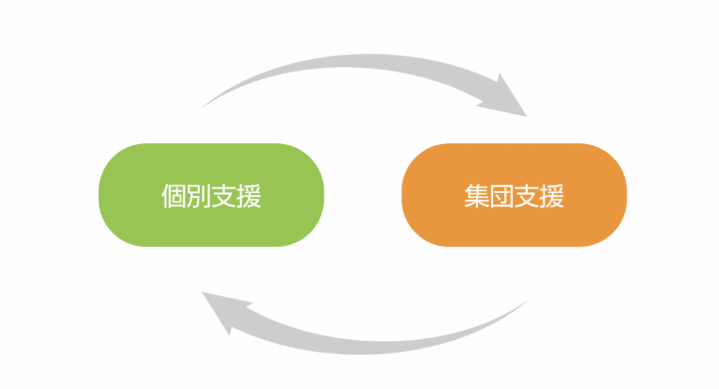 個別支援は一人ひとりの特性に応じで お子さまの持つ力を伸ばす支援を行います。康・生活、運動・感覚、認知・行動、言語・コミュニケーション、人間関係・社会性の5つの領域からバランスよく支援を行っています。